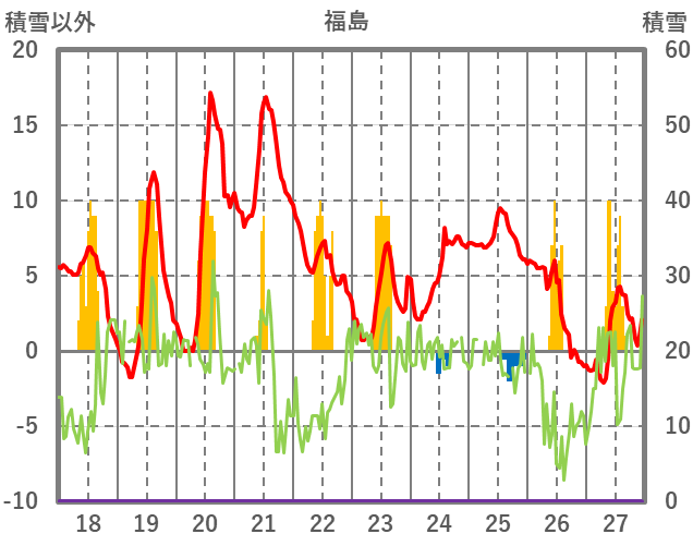 | 日 | 時 | 気温 | 降水 | 風向/風速 | 日照 | 積雪 | 降雪 |