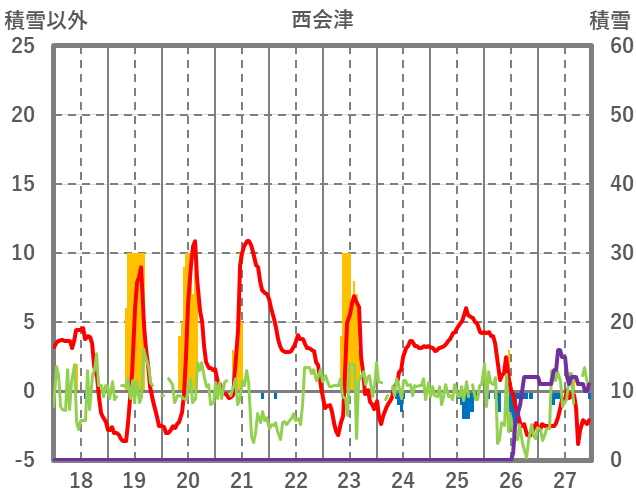 | 日 | 時 | 気温 | 降水 | 風向/風速 | 日照 | 積雪 | 降雪 |