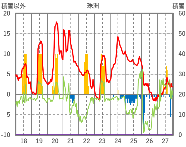 | 日 | 時 | 気温 | 降水 | 風向/風速 | 日照 | 積雪 | 降雪 |