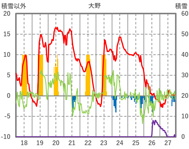 | 日 | 時 | 気温 | 降水 | 風向/風速 | 日照 | 積雪 | 降雪 |