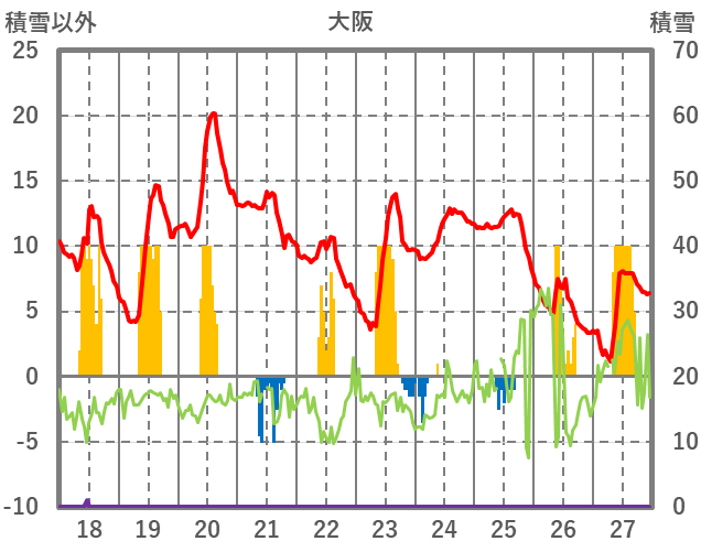 | 日 | 時 | 気温 | 降水 | 風向/風速 | 日照 | 積雪 | 降雪 |
