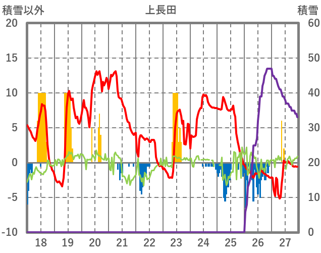 | 日 | 時 | 気温 | 降水 | 風向/風速 | 日照 | 積雪 | 降雪 |