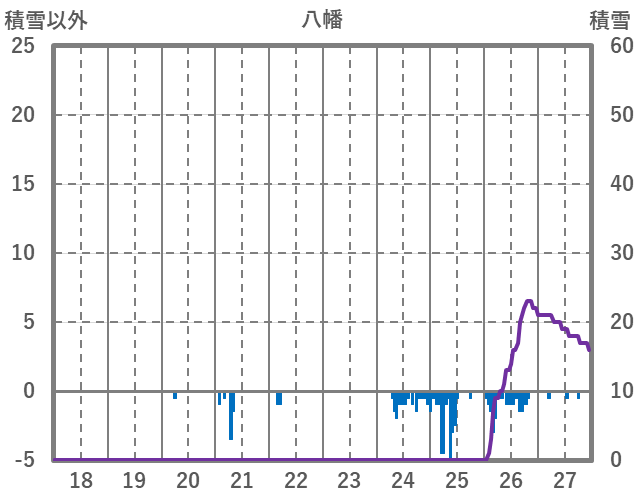 | 日 | 時 | 気温 | 降水 | 風向/風速 | 日照 | 積雪 | 降雪 |