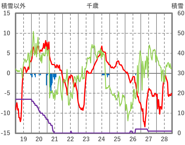 | 日 | 時 | 気温 | 降水 | 風向/風速 | 日照 | 積雪 | 降雪 |