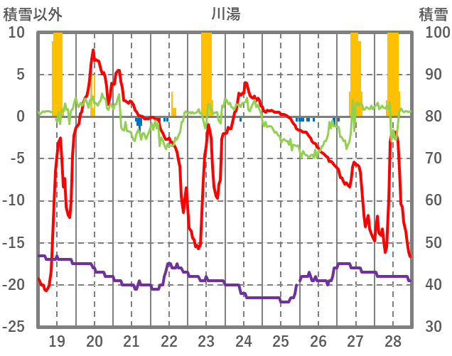 | 日 | 時 | 気温 | 降水 | 風向/風速 | 日照 | 積雪 | 降雪 |
