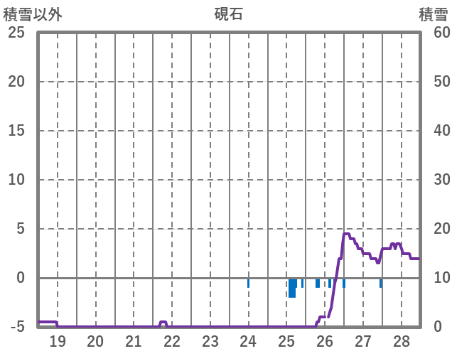 | 日 | 時 | 気温 | 降水 | 風向/風速 | 日照 | 積雪 | 降雪 |