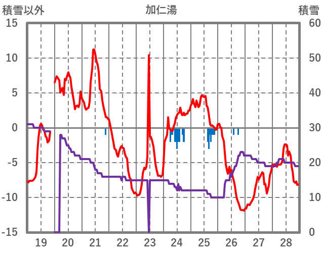 | 日 | 時 | 気温 | 降水 | 風向/風速 | 日照 | 積雪 | 降雪 |