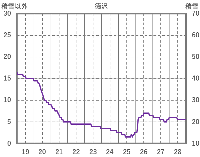| 日 | 時 | 気温 | 降水 | 風向/風速 | 日照 | 積雪 | 降雪 |