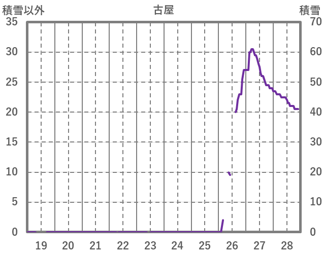 | 日 | 時 | 気温 | 降水 | 風向/風速 | 日照 | 積雪 | 降雪 |