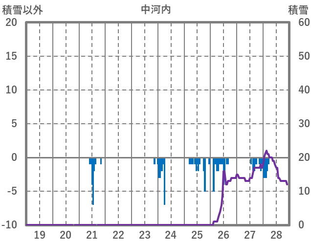| 日 | 時 | 気温 | 降水 | 風向/風速 | 日照 | 積雪 | 降雪 |