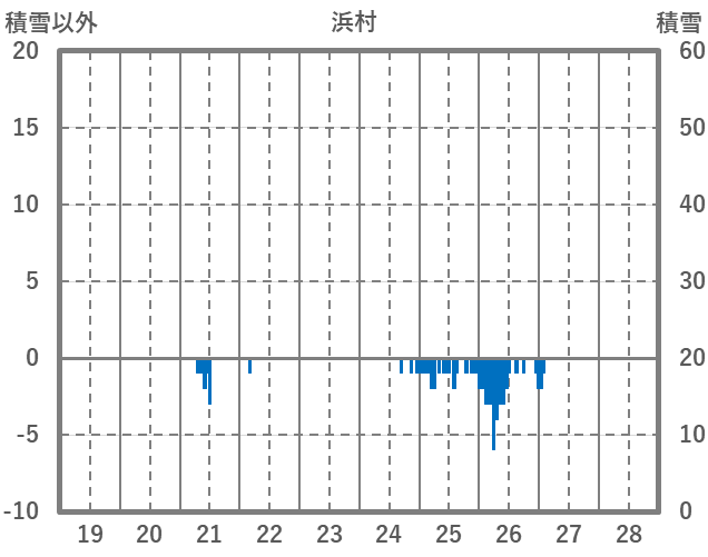 | 日 | 時 | 気温 | 降水 | 風向/風速 | 日照 | 積雪 | 降雪 |