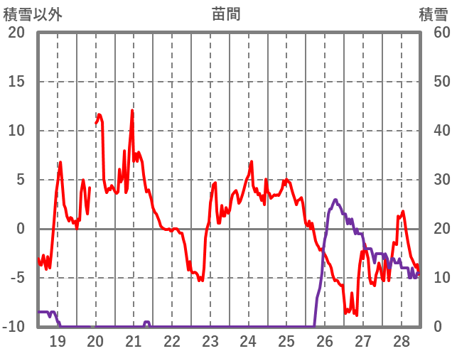 | 日 | 時 | 気温 | 降水 | 風向/風速 | 日照 | 積雪 | 降雪 |