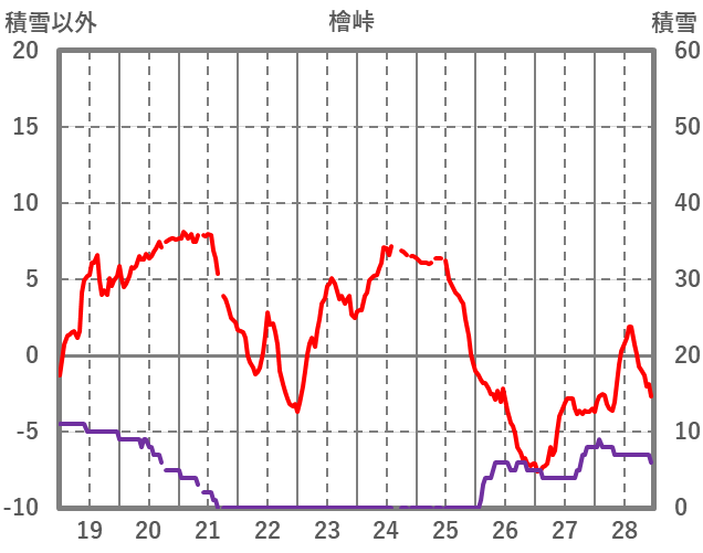 | 日 | 時 | 気温 | 降水 | 風向/風速 | 日照 | 積雪 | 降雪 |
