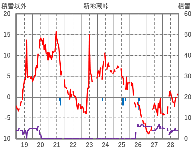 | 日 | 時 | 気温 | 降水 | 風向/風速 | 日照 | 積雪 | 降雪 |