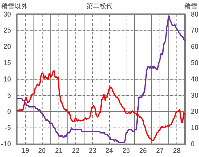 | 日 | 時 | 気温 | 降水 | 風向/風速 | 日照 | 積雪 | 降雪 |