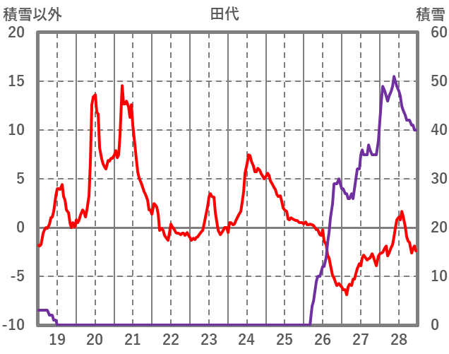 | 日 | 時 | 気温 | 降水 | 風向/風速 | 日照 | 積雪 | 降雪 |