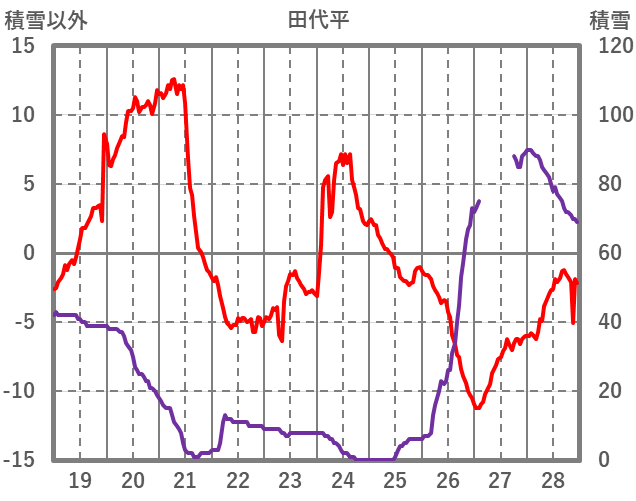 | 日 | 時 | 気温 | 降水 | 風向/風速 | 日照 | 積雪 | 降雪 |