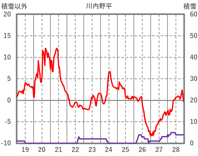 | 日 | 時 | 気温 | 降水 | 風向/風速 | 日照 | 積雪 | 降雪 |