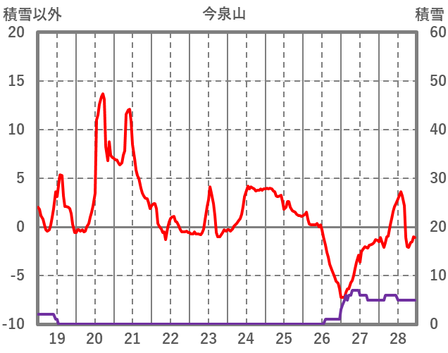 | 日 | 時 | 気温 | 降水 | 風向/風速 | 日照 | 積雪 | 降雪 |