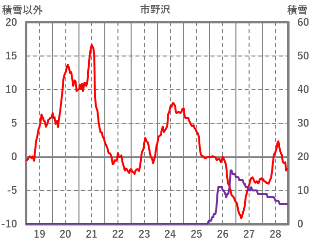 | 日 | 時 | 気温 | 降水 | 風向/風速 | 日照 | 積雪 | 降雪 |