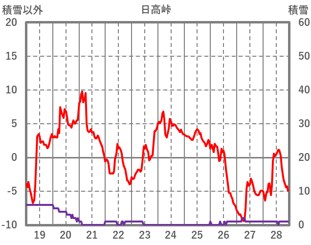 | 日 | 時 | 気温 | 降水 | 風向/風速 | 日照 | 積雪 | 降雪 |