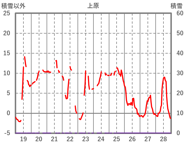| 日 | 時 | 気温 | 降水 | 風向/風速 | 日照 | 積雪 | 降雪 |