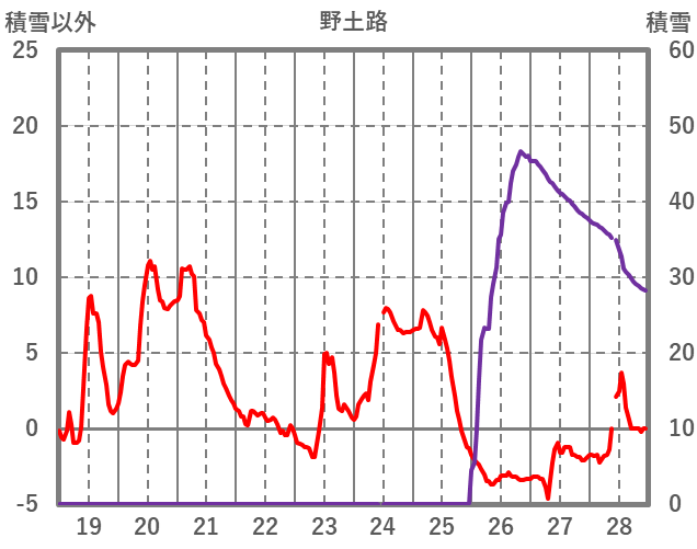 | 日 | 時 | 気温 | 降水 | 風向/風速 | 日照 | 積雪 | 降雪 |