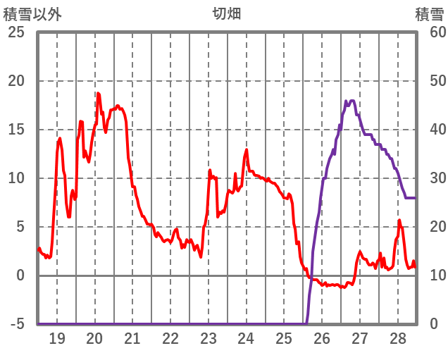 | 日 | 時 | 気温 | 降水 | 風向/風速 | 日照 | 積雪 | 降雪 |