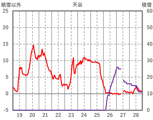 | 日 | 時 | 気温 | 降水 | 風向/風速 | 日照 | 積雪 | 降雪 |