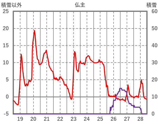 | 日 | 時 | 気温 | 降水 | 風向/風速 | 日照 | 積雪 | 降雪 |