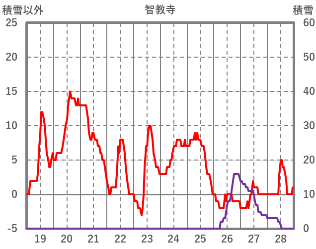 | 日 | 時 | 気温 | 降水 | 風向/風速 | 日照 | 積雪 | 降雪 |