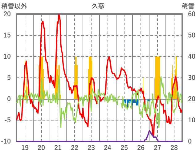 | 日 | 時 | 気温 | 降水 | 風向/風速 | 日照 | 積雪 | 降雪 |