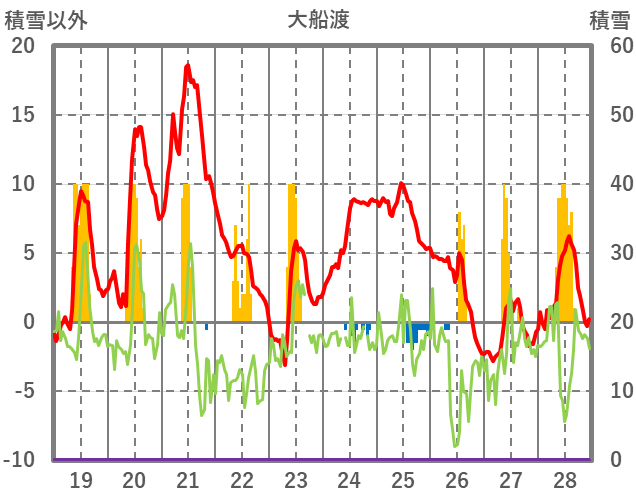| 日 | 時 | 気温 | 降水 | 風向/風速 | 日照 | 積雪 | 降雪 |