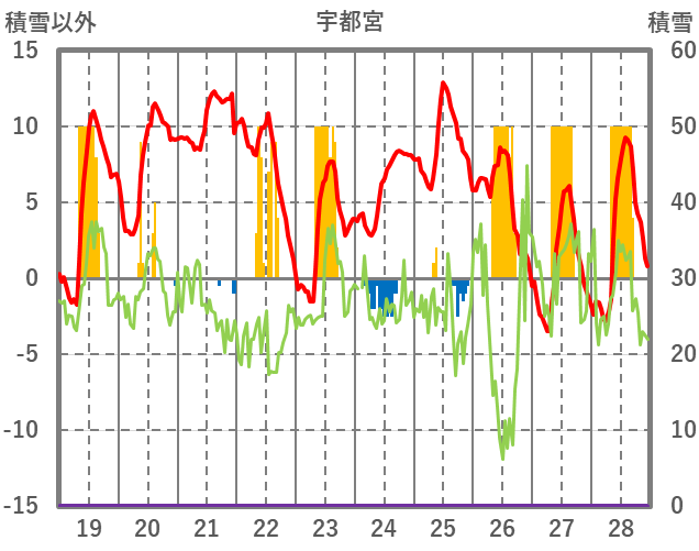| 日 | 時 | 気温 | 降水 | 風向/風速 | 日照 | 積雪 | 降雪 |