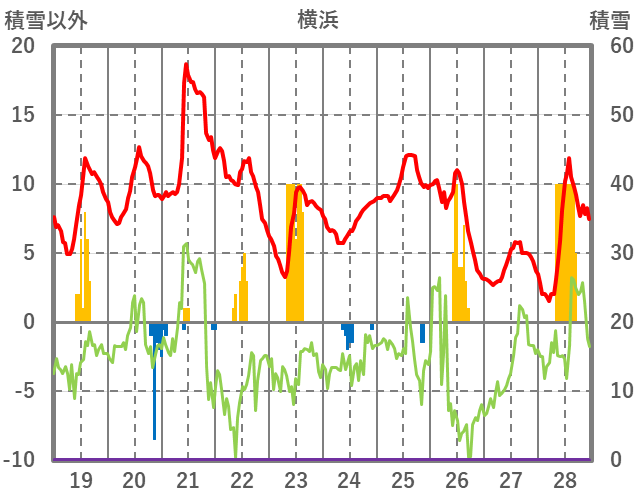 | 日 | 時 | 気温 | 降水 | 風向/風速 | 日照 | 積雪 | 降雪 |
