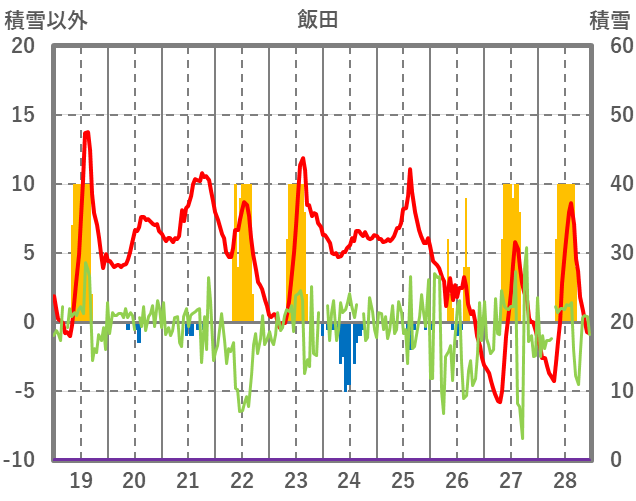 | 日 | 時 | 気温 | 降水 | 風向/風速 | 日照 | 積雪 | 降雪 |