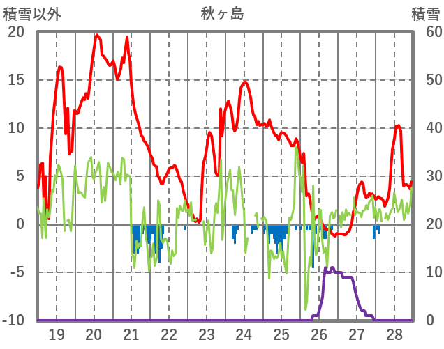| 日 | 時 | 気温 | 降水 | 風向/風速 | 日照 | 積雪 | 降雪 |