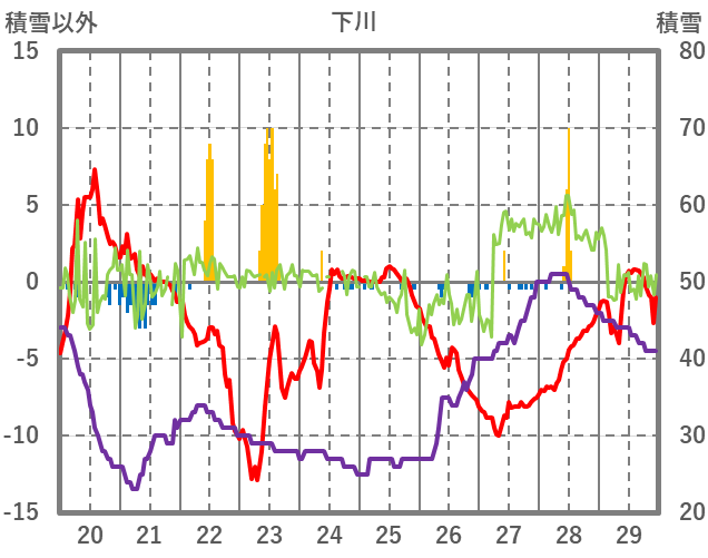 | 日 | 時 | 気温 | 降水 | 風向/風速 | 日照 | 積雪 | 降雪 |