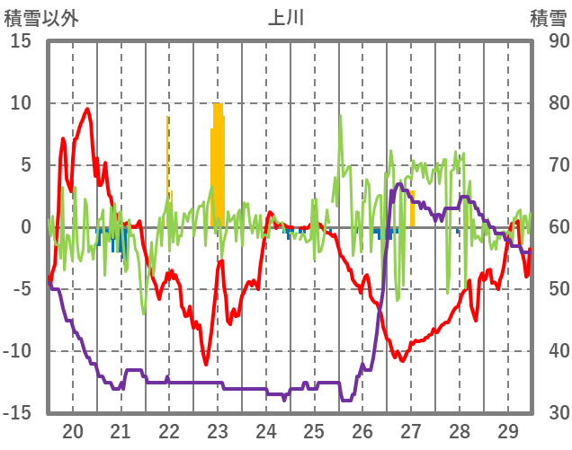 | 日 | 時 | 気温 | 降水 | 風向/風速 | 日照 | 積雪 | 降雪 |