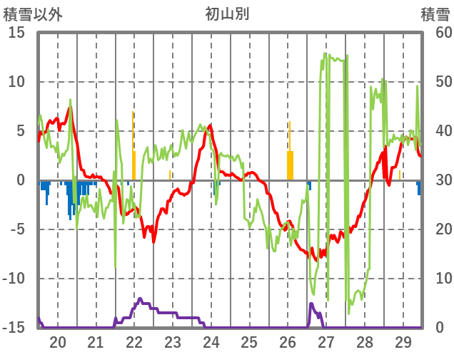 | 日 | 時 | 気温 | 降水 | 風向/風速 | 日照 | 積雪 | 降雪 |