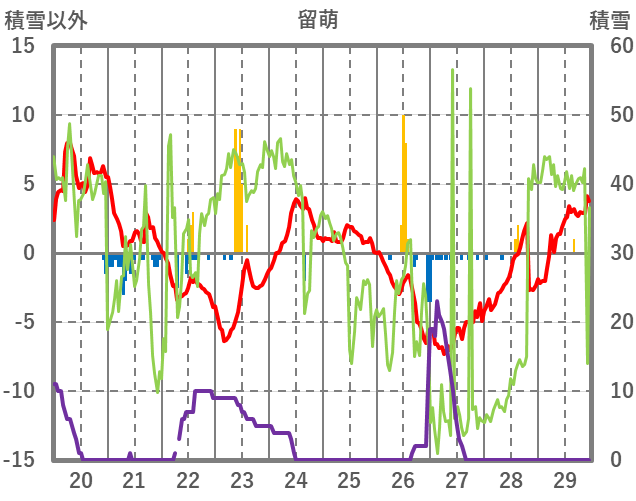 | 日 | 時 | 気温 | 降水 | 風向/風速 | 日照 | 積雪 | 降雪 |
