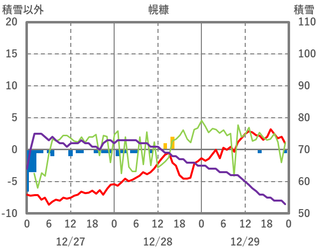 | 日 | 時 | 気温 | 降水 | 風向/風速 | 日照 | 積雪 | 降雪 |