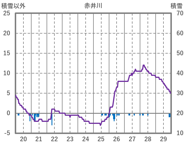 | 日 | 時 | 気温 | 降水 | 風向/風速 | 日照 | 積雪 | 降雪 |