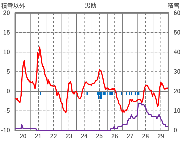 | 日 | 時 | 気温 | 降水 | 風向/風速 | 日照 | 積雪 | 降雪 |