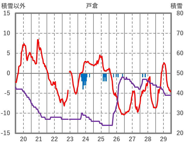 | 日 | 時 | 気温 | 降水 | 風向/風速 | 日照 | 積雪 | 降雪 |
