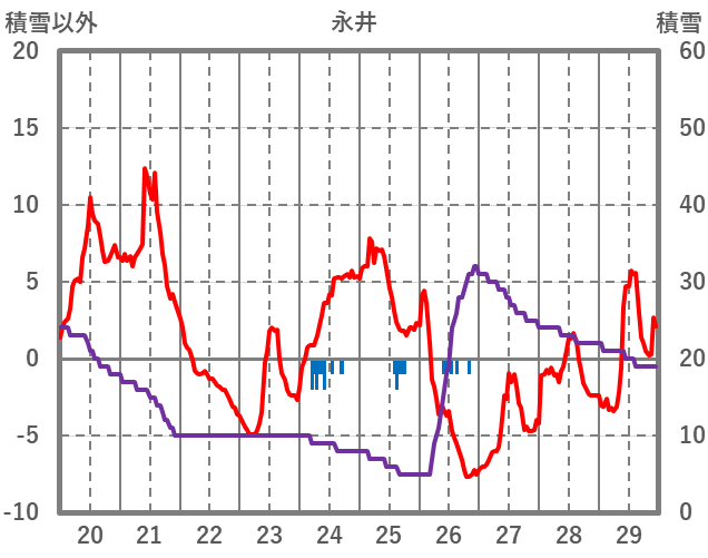 | 日 | 時 | 気温 | 降水 | 風向/風速 | 日照 | 積雪 | 降雪 |