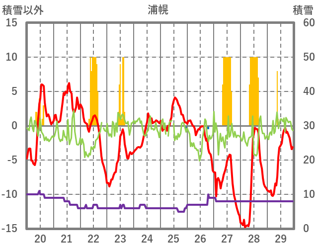 | 日 | 時 | 気温 | 降水 | 風向/風速 | 日照 | 積雪 | 降雪 |