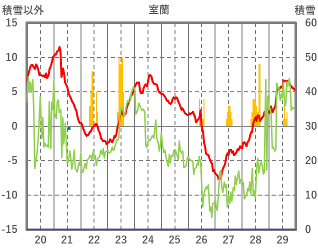 | 日 | 時 | 気温 | 降水 | 風向/風速 | 日照 | 積雪 | 降雪 |