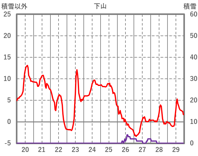 | 日 | 時 | 気温 | 降水 | 風向/風速 | 日照 | 積雪 | 降雪 |