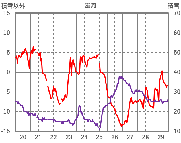 | 日 | 時 | 気温 | 降水 | 風向/風速 | 日照 | 積雪 | 降雪 |